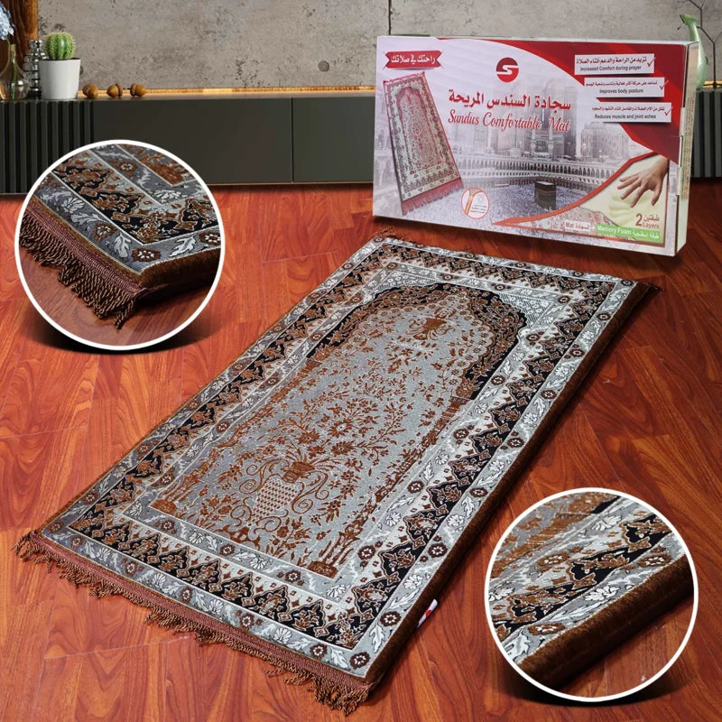 سجادة سندس الفاخرة ليست مجرد سجادة صلاة عادية، بل تحفة فنية تجمع بين الجودة العالية والتصميم الراقي. مصنوعة من المخمل السميك الذي يوفر عزل ممتاز عن الأرضية الباردة.